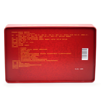 好的产品再配上好的包装,能够让消费者产生购买的欲望,此款龟鹿片铁盒,长方形铁盒,由盖、身、底三个部分组成,内外过光油,颜色鲜艳明亮,客户还可根据您的产品需求选择过透明油、哑油、皱纹油等其他油墨。
