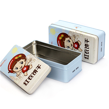 此款卡通饼干包装铁盒,结构为三片式天地盖结构,内卷线锣底。印刷为单面四色+1专色处理,罐、身、底均有印刷,外过哑油,内过符合国标的透明光油设计。其材质为国产0.23mm马口铁制成,具有优异的马口铁料,具有优异的密封性,防潮性能特点,适合您的饼干产品不易受潮变质,可适应长期运输流通的包装要求。