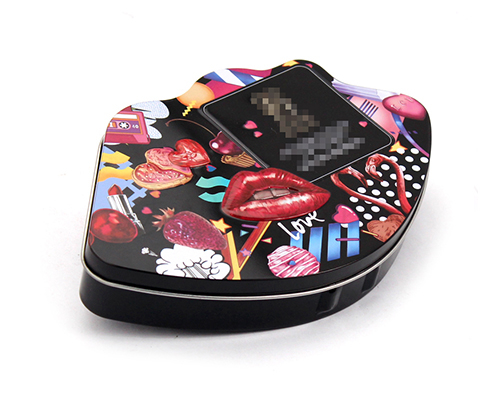 此款嘴唇形润唇膏铁盒子是化妆品铁盒包装产品之一,在制作工艺上,铁盒表面印刷为单面印刷,为CMYK四色印刷处理,铁盒印刷版面可让客户自行设计提供或由我司进行设计。印刷可选择单/双面,四色、专色进行印刷,常规条件下采用一专+四色进行印刷,而印刷后的铁料还需经过油料处理,外部通常过上光油,内部上金油。