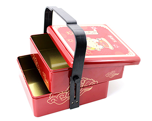 这款三层手腕马口铁皮罐的尺寸为270*270*261mm,为了顺应多样化的市场包装需求,这款食品马口铁罐可做成心形、正方形、椭圆形、车形、书本形等异形造型